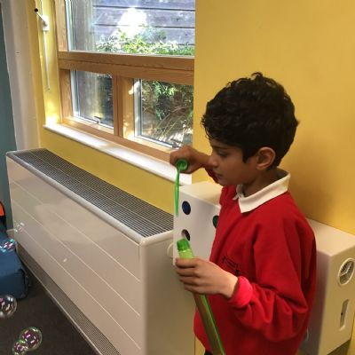 We are working on oral motor skill by blowing bubbles, kisses or raspberries
