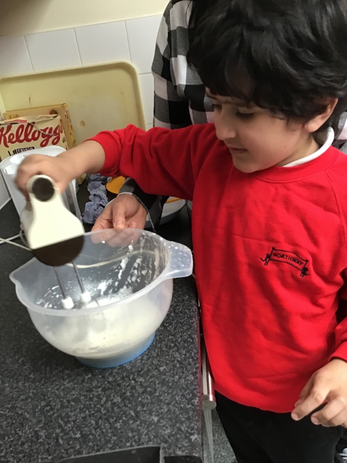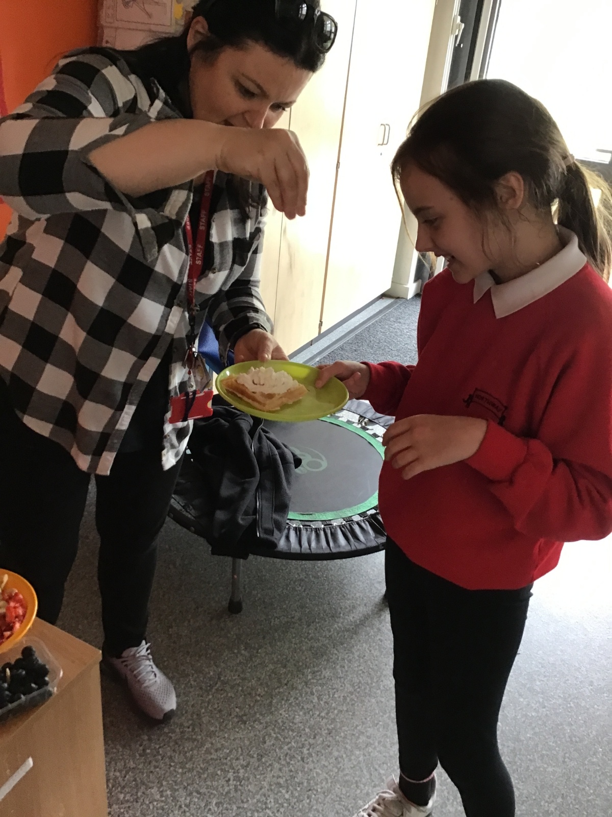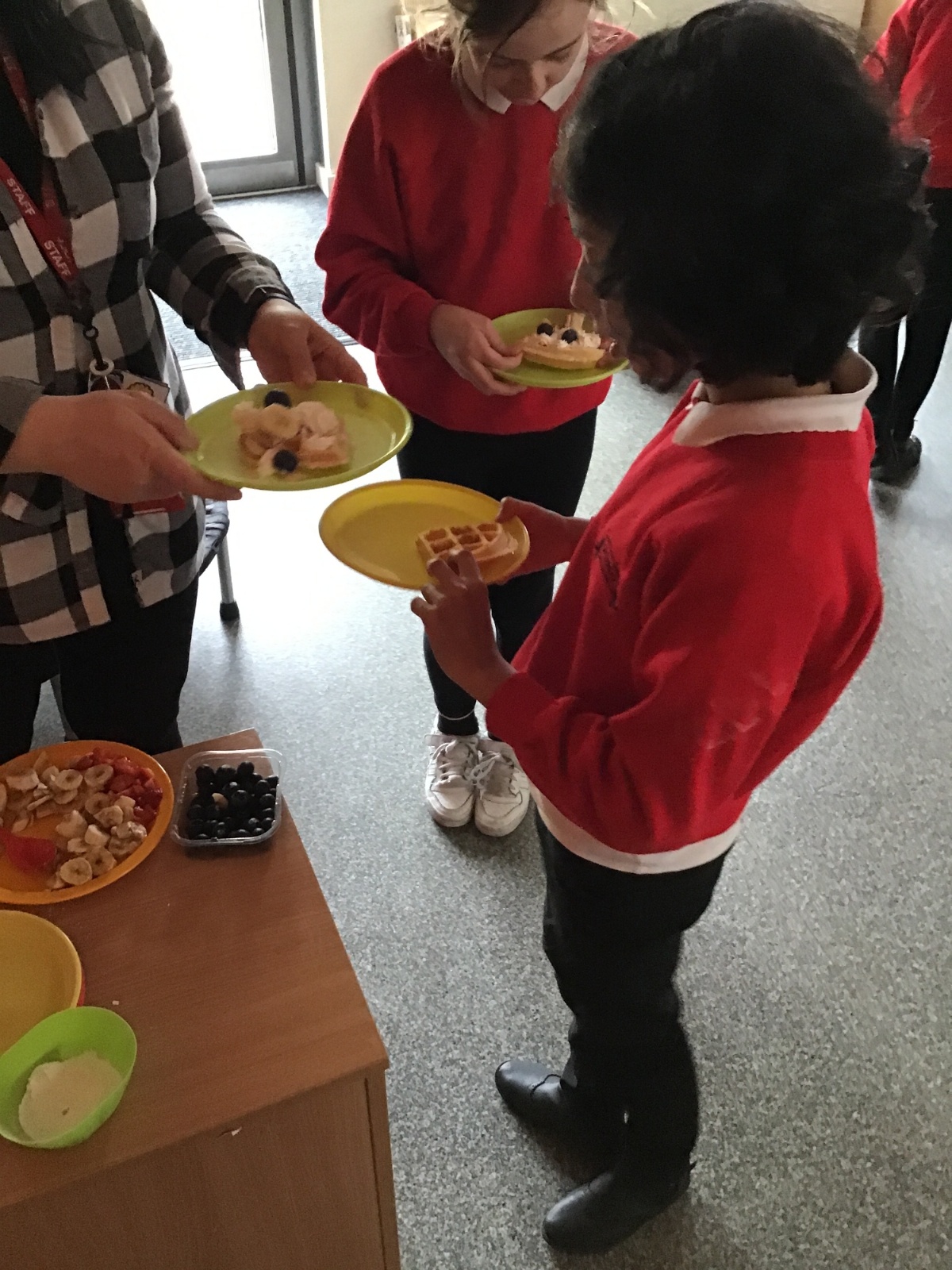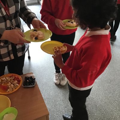 In cooking we are travelling around the world! We travelled to Belgium in particular and made delicious waffles. The children helped make the batter and cut all the fruit. We cooked the waffles using a waffle maker and then the children were able to choose squirty cream and fruit for toppings.