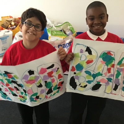 Children in Jupiter Class helped to donate the goods today!
